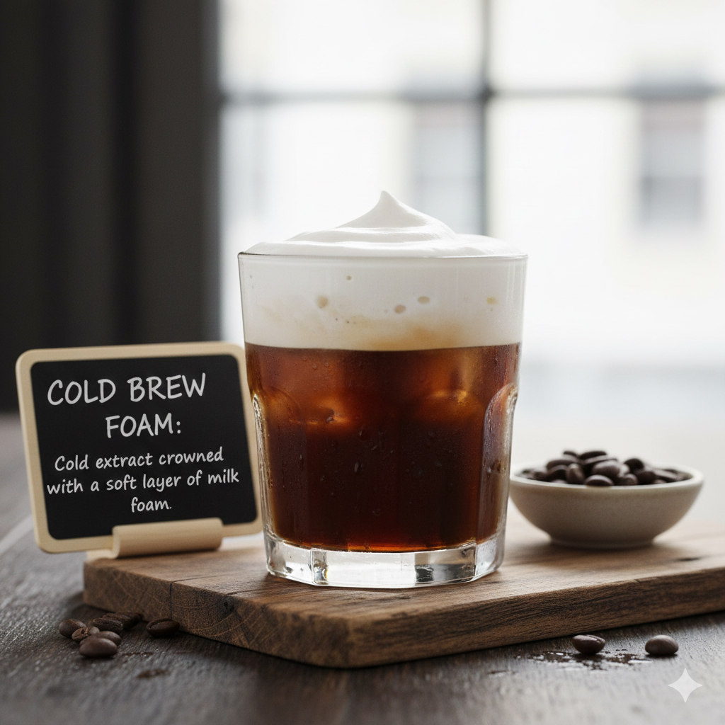 "La espuma de leche suaviza la intensidad del cold brew creando un contraste de texturas."